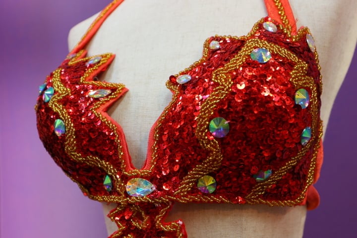 しっかりした素材で踊りやすく、ベリーダンスのオリエンタル衣装を知り尽くしたデザイナーの豪華な衣装です。